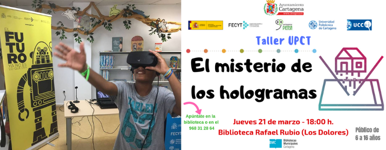 Cartagena Piensa nos trae este taller dedicado a los más pequeños. La holografía es una técnica avanzada de fotografía que consiste en crear imágenes tridimensionales (hologramas) a partir del empleo de la luz. Así, con ayuda de un rayo láser, se graba microscópicamente la información de un objeto en una superficie fotosensible, dando lugar al holograma. De esta forma, cuando este último es iluminado de nuevo, se genera en él la imagen del objeto original en tres dimensiones, dando lugar a un espectacular fenómeno visual que desafía al sentido común.